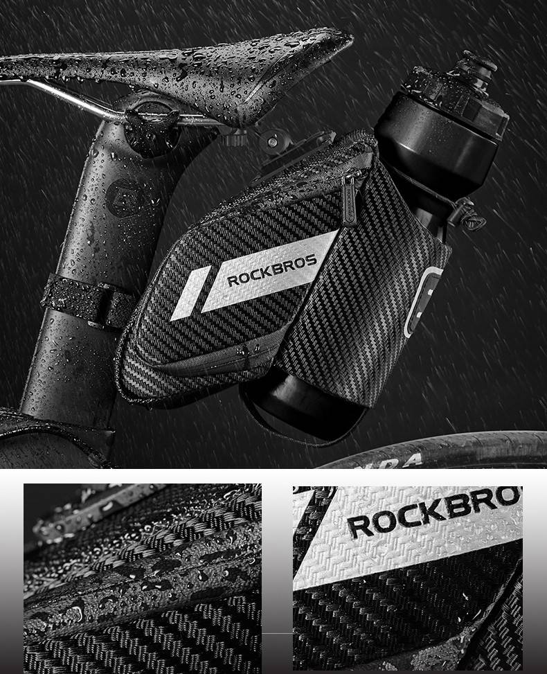A prova d'agua : A Bolsa de Selim Impermeável com Compartimento para Garrafas Rockbros tem carcaça e zíper construídos com materiais resistentes a água: