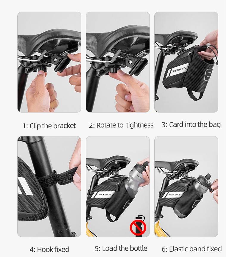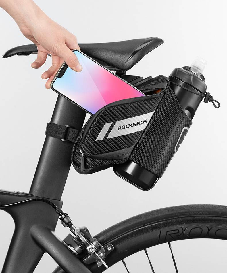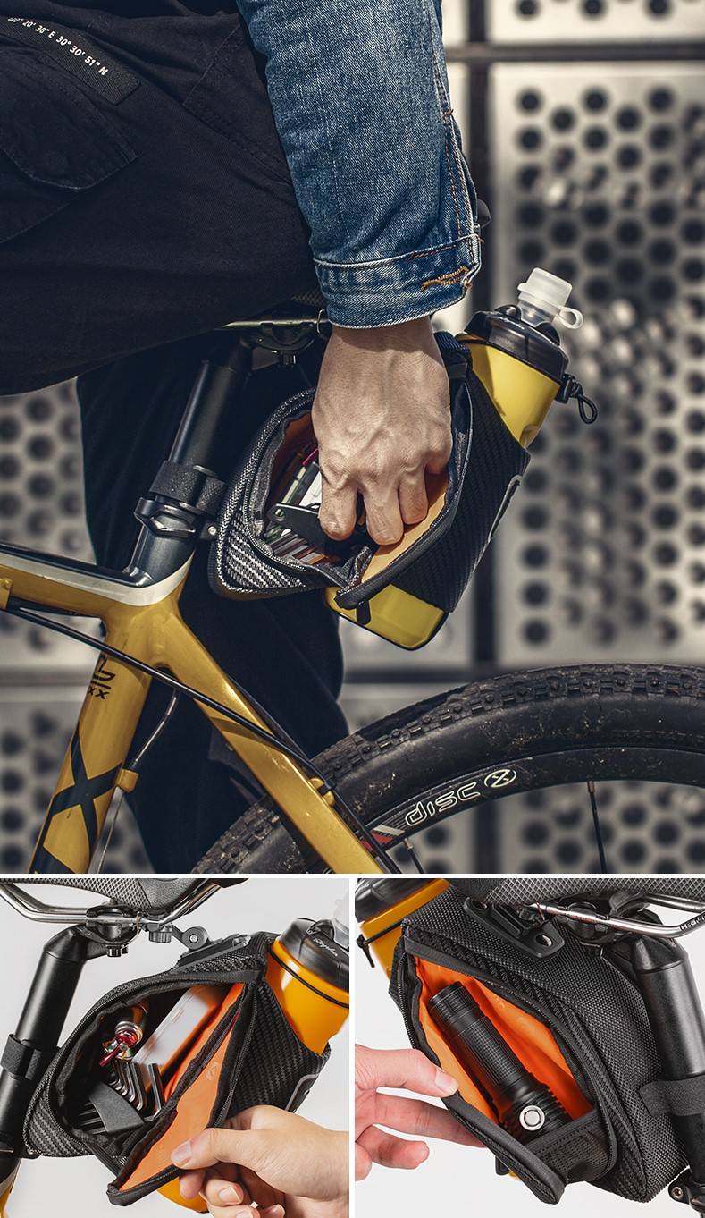 Design inteligente: A Bolsa de Selim Impermeável com Compartimento para Garrafas Rockbros foi desenvolvido para não danificar a sua bicicleta, disponível em várias variações de modelos e alturas de banco: