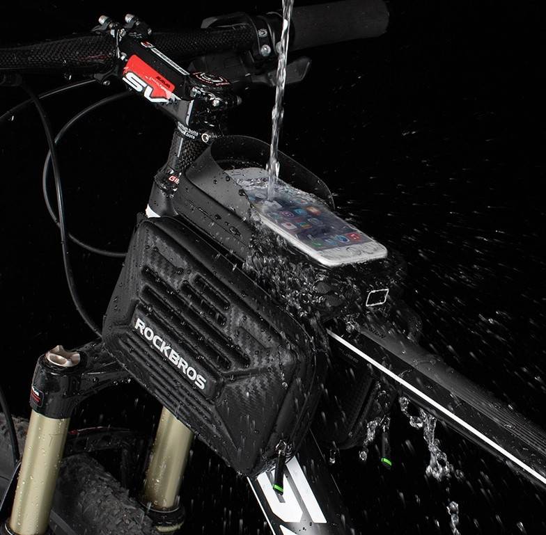 Totalmente impermeável: A Bolsa de Quadro Touch Screen Impermeável Rockbros é construída com material 100% impermeável, evitando danos aos seus aparelhos: