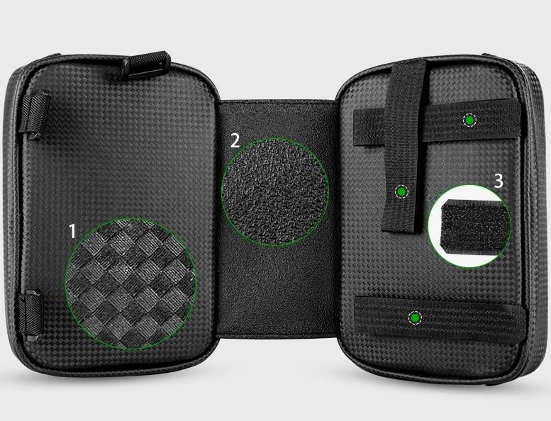 Grande fixação: A Bolsa de Quadro Touch Screen Impermeável Rockbros é construída com três correias e ganchos e material antiderrapante, entregando uma maior estabilidade: