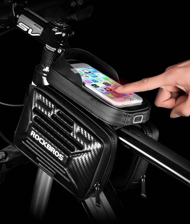 Resistente a desgaste: A Bolsa de Quadro Touch Screen Impermeável Rockbros tem construção resistente a desgastes e danos por abrasão: