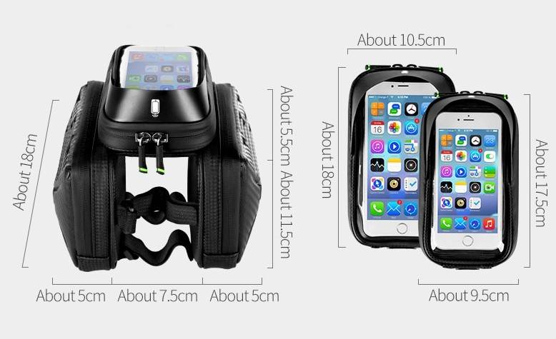 Dois tamanhos diferentes: A Bolsa de Quadro Touch Screen Impermeável Rockbros é vendida em dois tamanhos distintos, para você escolher o que mais se adapta ao seu dispositivo: