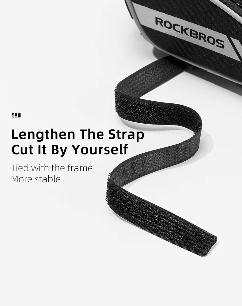 Alça Ajustável e Personalizável: A fita em velcro pode ser ajustada ou cortada conforme sua necessidade, garantindo encaixe firme no quadro da bicicleta e muito mais estabilidade durante o uso: