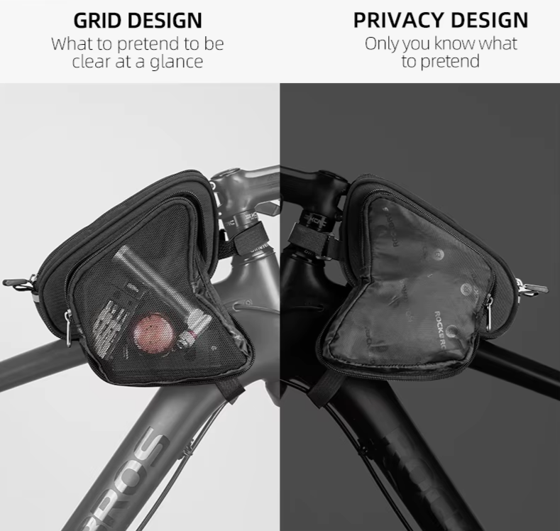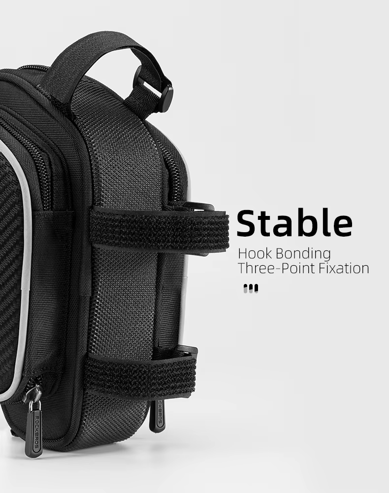 Fixação Estável em Três Pontos: Sistema de velcro com três pontos de fixação que mantém a bolsa firme no quadro, evitando balanços e garantindo mais segurança mesmo em terrenos irregulares: