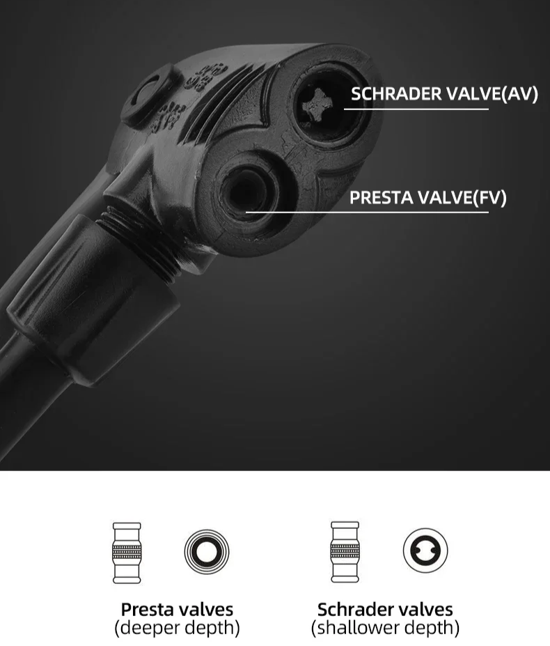 Compatibilidade Total: Enche qualquer pneu sem adaptador — funciona com válvulas Presta e Schrader de uma vez só: