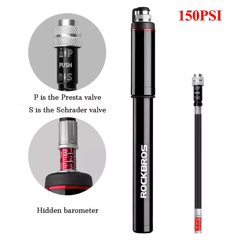 Feito de liga de alumínio de grande resistência usinada cnc, sólido e durável; a mangueira de borracha é destacável, conveniente para transportar ou colocá-lo no saco; com uma agulha de bola para inflar bolas de futebol, basketballs e mais; com um suporte de montagem, montagem fácil para bicicleta.