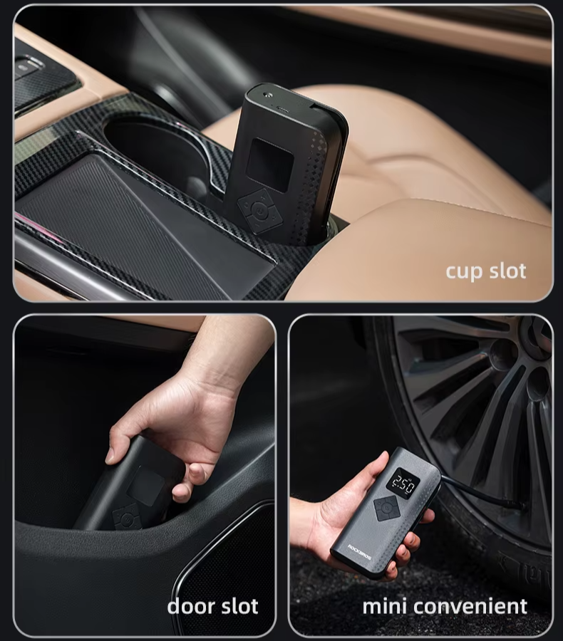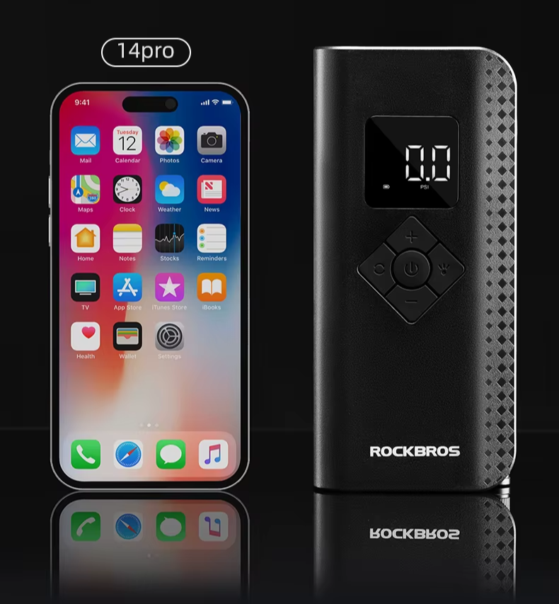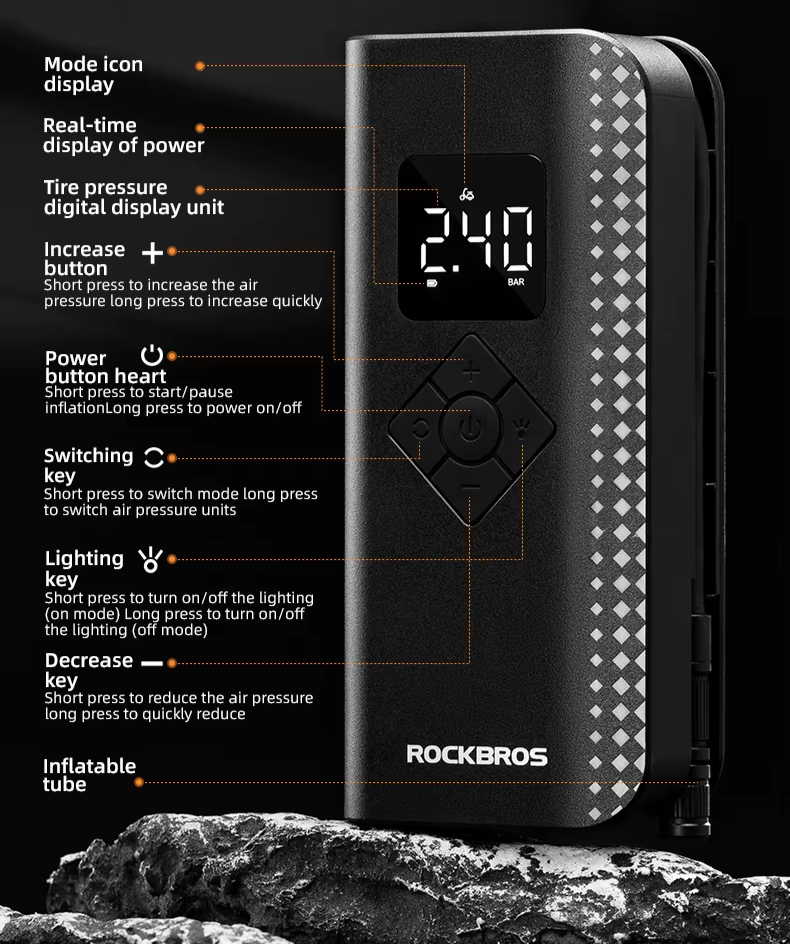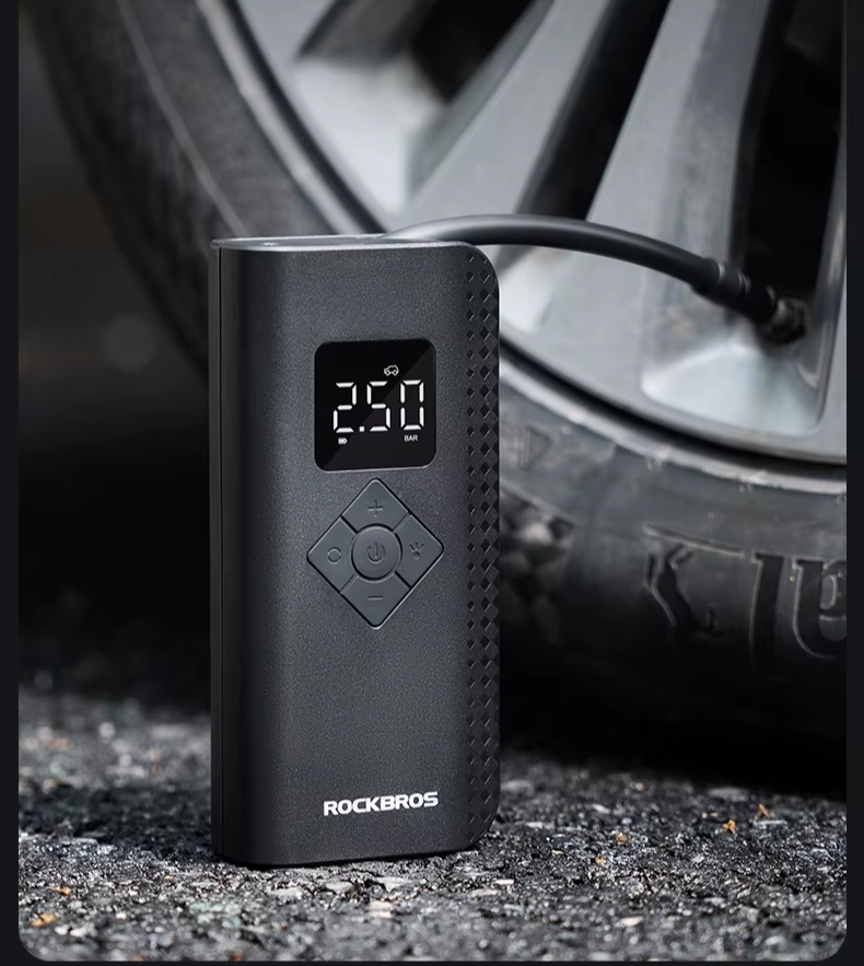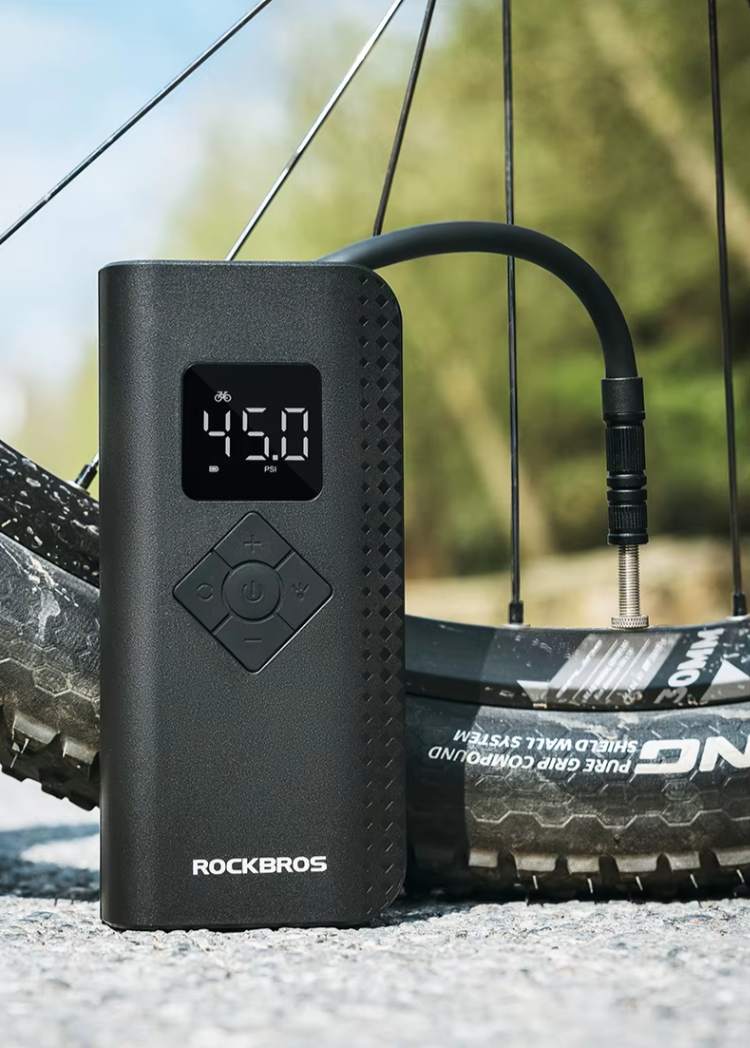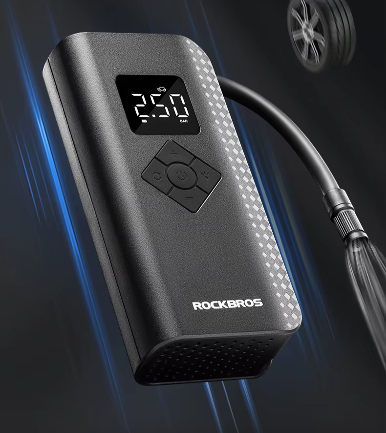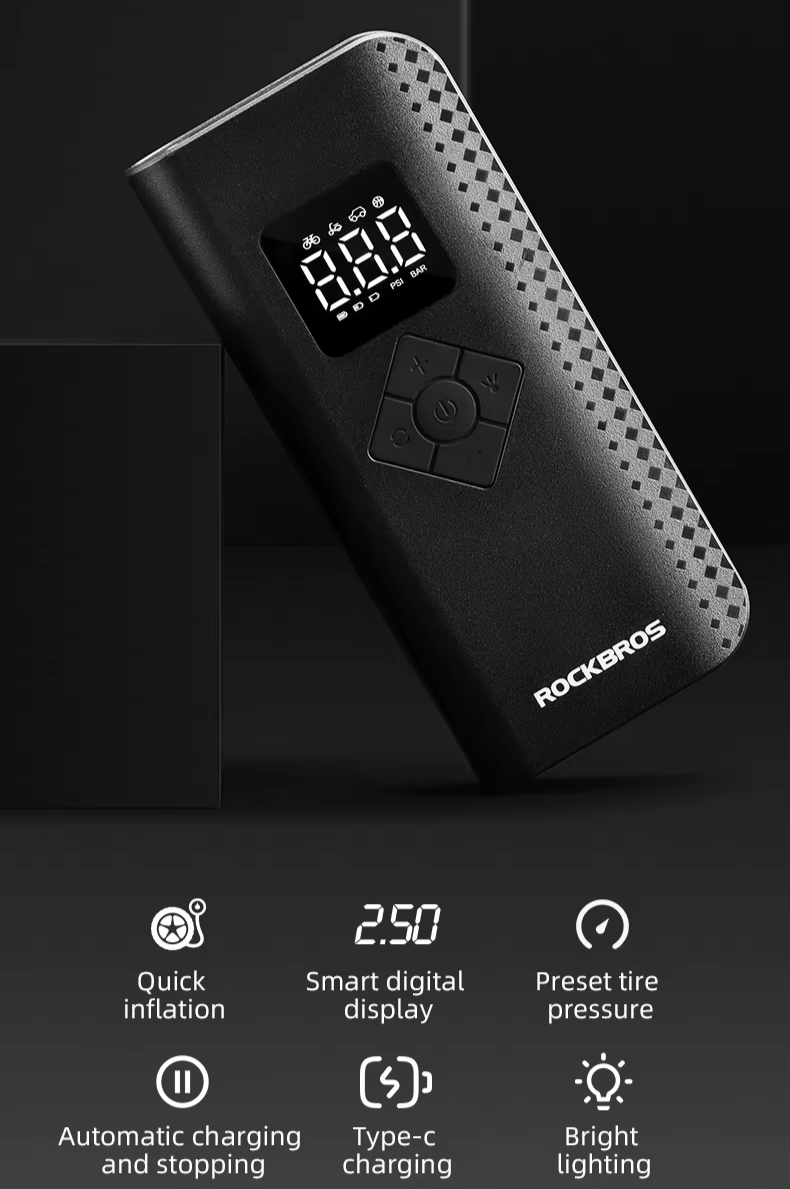 Compressor de Ar Inteligente 2000mAh Rockbros: Bomba elétrica sem fio com display digital preciso, pressão pré-definida e desligamento automático: