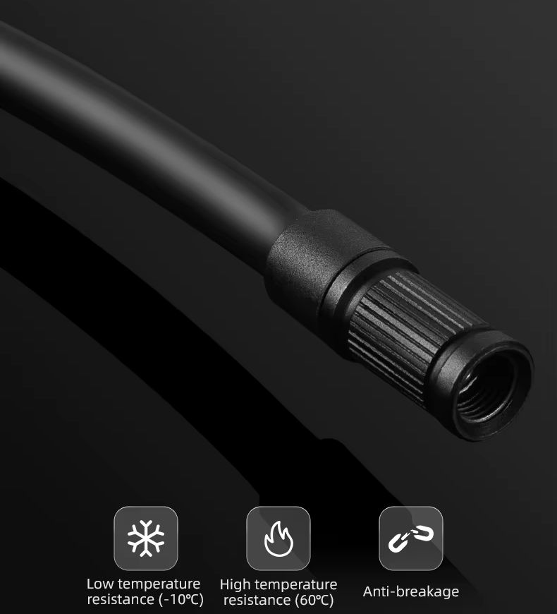 Mangueira Resistente e Flexível: Tubo reforçado, durável e resistente a baixas e altas temperaturas, garantindo segurança e eficiência na inflagem: