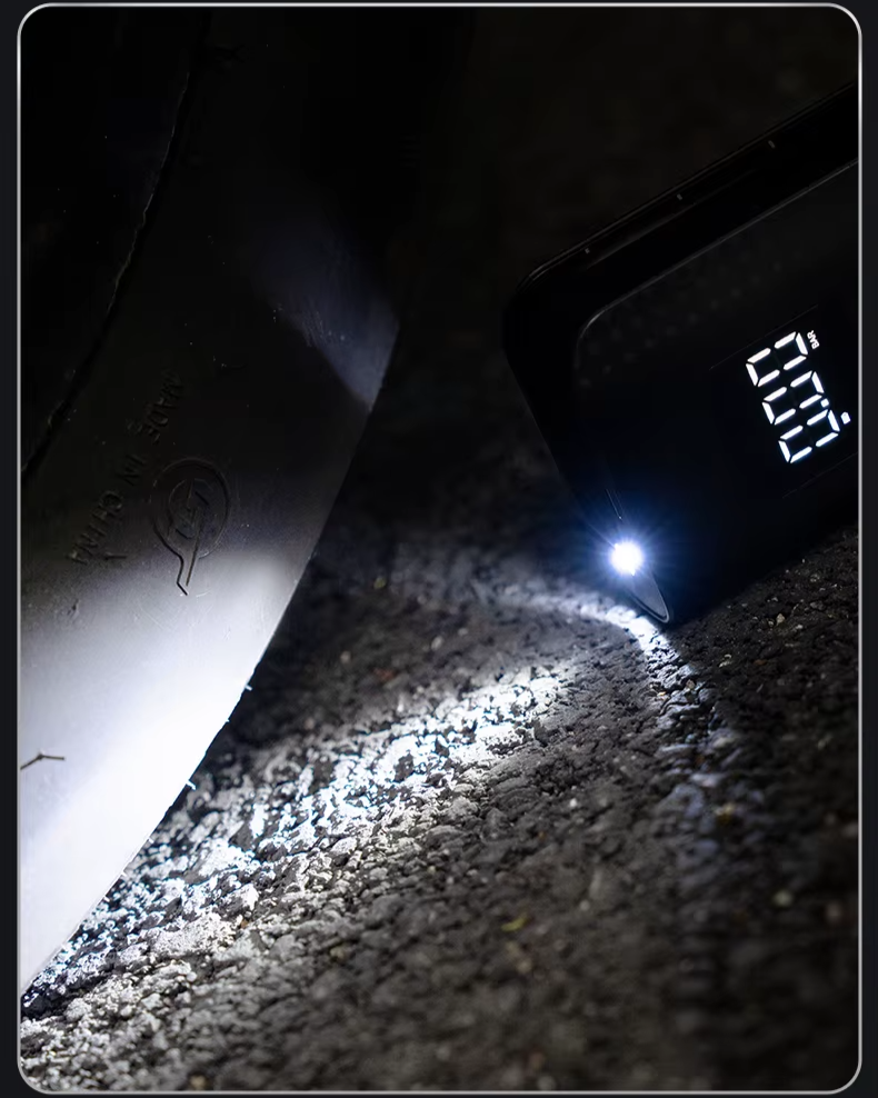 Iluminação LED Integrada para Uso Noturno: Com luz embutida, você pode inflar pneus mesmo no escuro com total segurança: