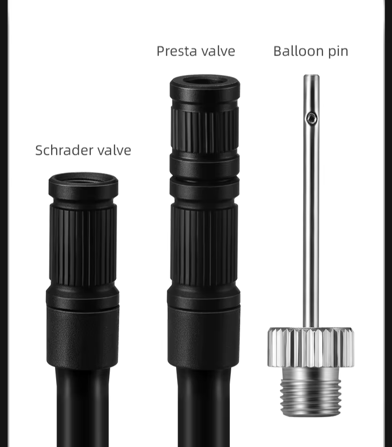 Bicos Multiuso AV/FV + Adaptador para Bola: Compatível com válvulas Schrader (carro) e Presta (bike), além de incluir agulha para bolas esportivas: