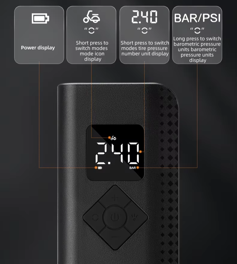 Display Digital Inteligente em Tempo Real: Visualize a pressão com precisão e ajuste facilmente antes de inflar: