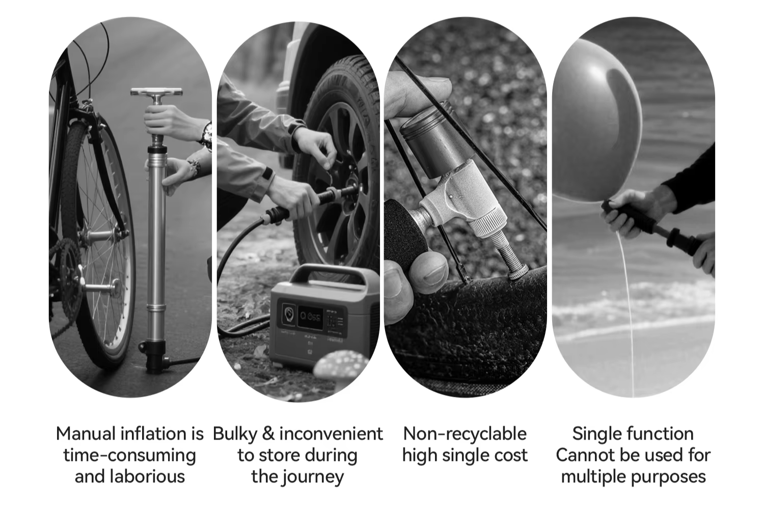 Cansado dos Problemas nas Atividades ao Ar Livre? Esqueça bombas manuais demoradas, equipamentos volumosos e soluções limitadas. Tenha mais praticidade, economia e versatilidade para inflar pneus e acessórios com rapidez onde você estiver: