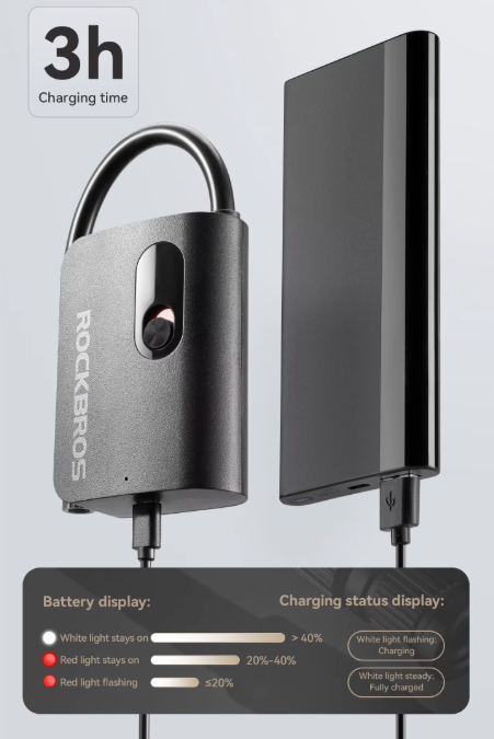 Bateria de Lítio 2600mAh – Autonomia Duradoura: Equipada com bateria de alta capacidade, oferece inflagem estável e confiável por mais de 300 ciclos, com baixa perda de desempenho: