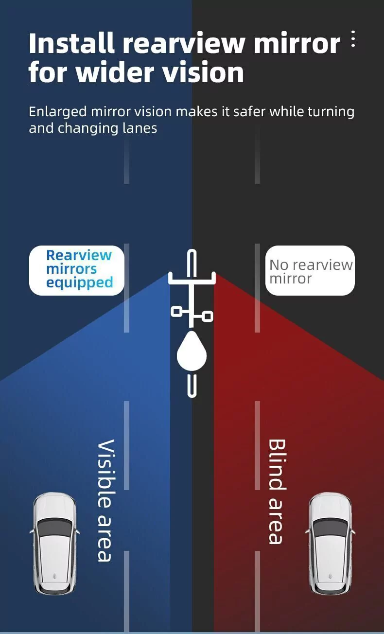 O espelho pode ser girado livremente em vários ângulos, conveniente para ajustar a visão