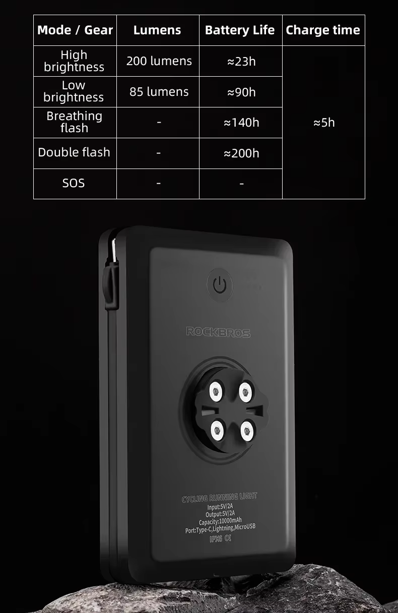 Modos de Iluminação e Autonomia para Qualquer Situação: Conta com vários modos de uso, do alto brilho ao modo econômico e sinalizações de segurança. Oferece até 200 lúmens, autonomia prolongada de até 200 horas (em modo flash) e recarga completa em cerca de 5 horas, garantindo visibilidade, segurança e praticidade em todos os percursos: