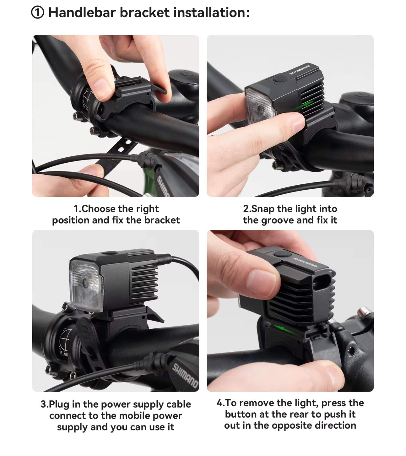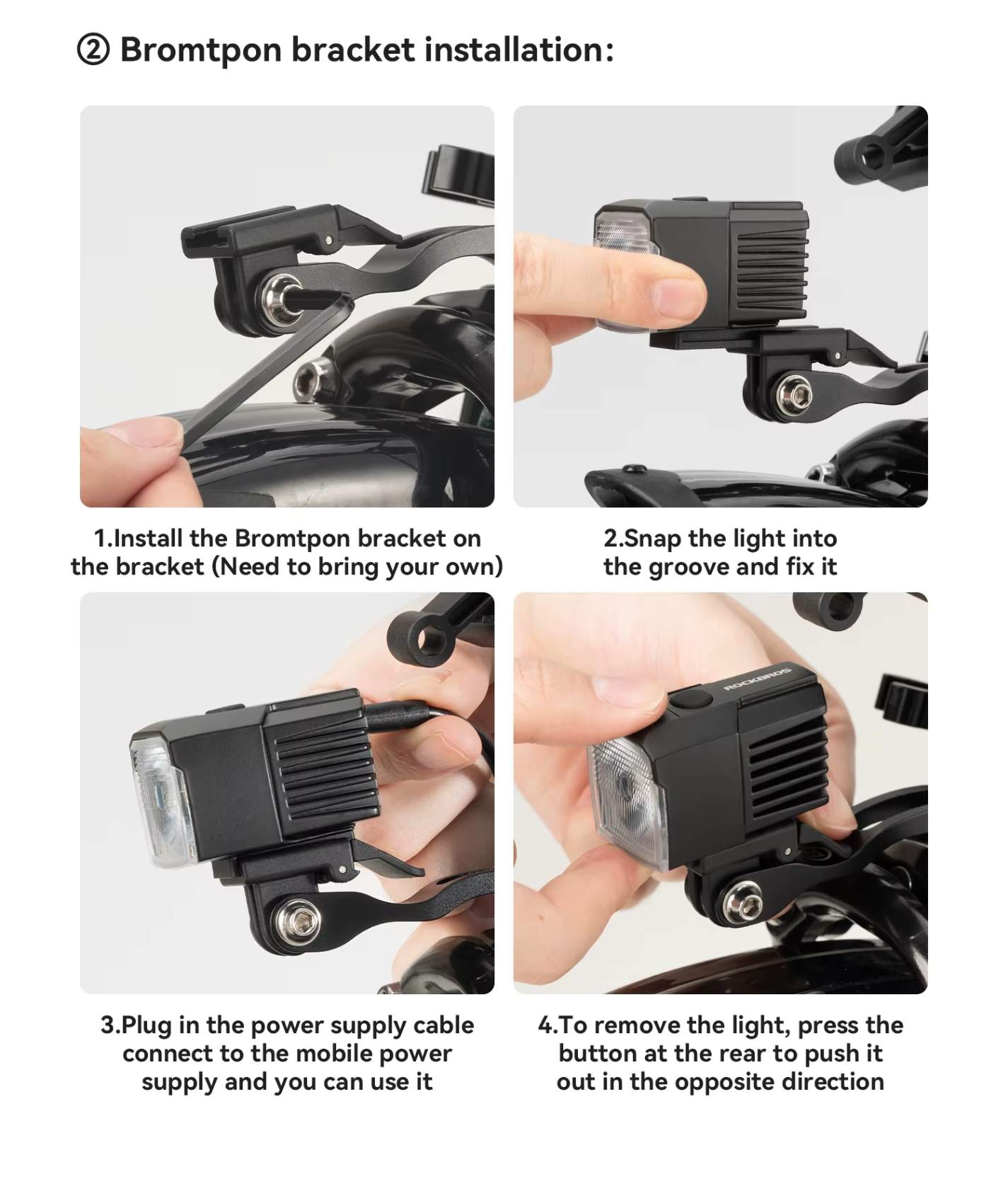 Instalação Rápida e Sem Complicações: Fixe o suporte, encaixe a lanterna e conecte o cabo. Pronta para uso em poucos segundos: