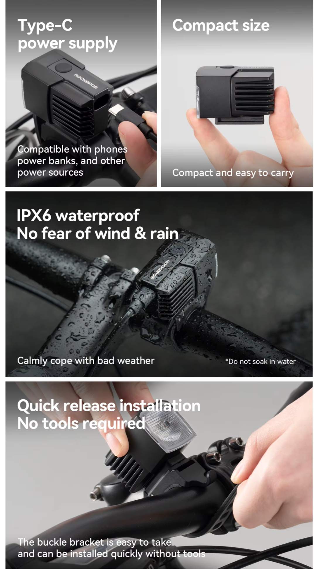 Praticidade e Resistência no Dia a Dia: Compacta, com alimentação Type-C, resistente à água (IPX6) e instalação rápida sem ferramentas: