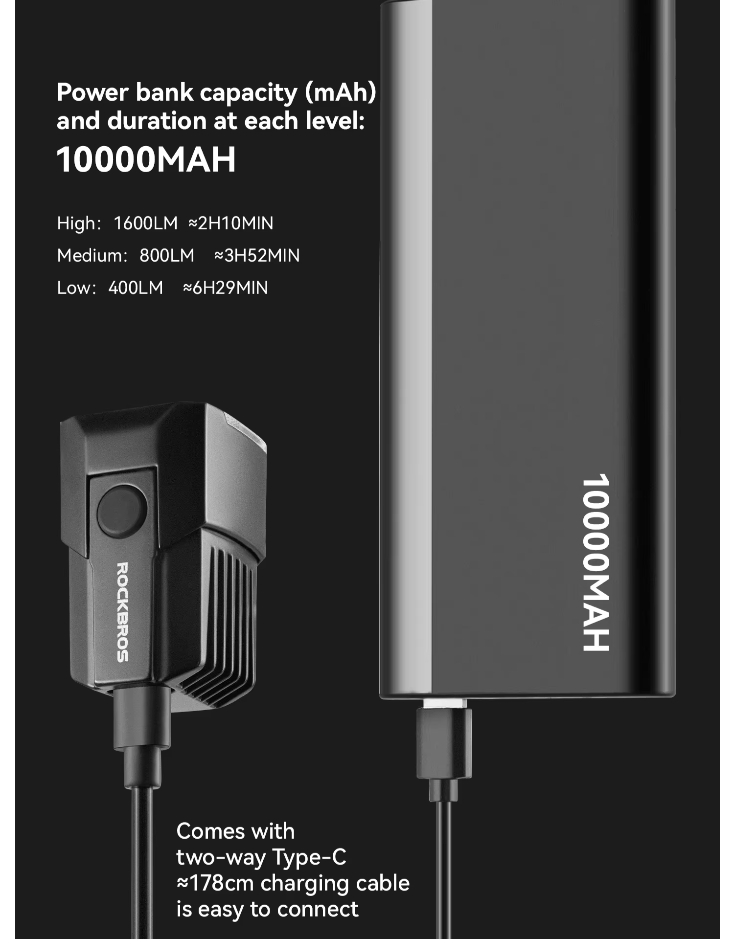 Iluminação Potente para Pedais Noturnos: LED de 1600 lumens com 3 níveis de intensidade, oferecendo amplo alcance e visibilidade para pedalar com segurança à noite: