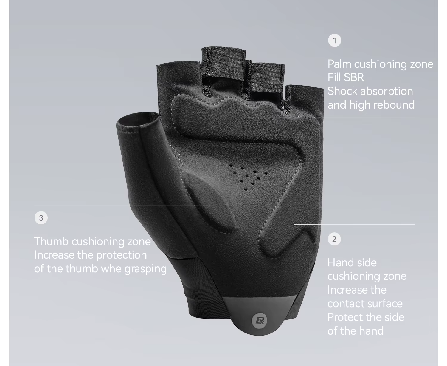 Palma Antiderrapante: Material em microfibra com textura aderente, que aumenta a estabilidade nas mãos e garante mais controle e segurança durante o pedal: