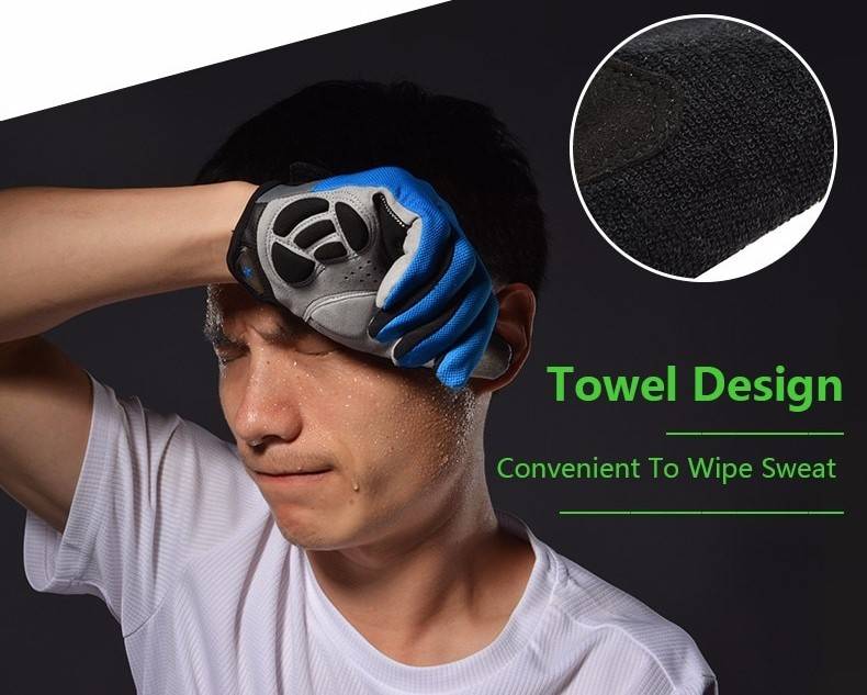 Design inteligente: As Luvas de Dedo Longo para Ciclismo S030-2 Rockbros é construída em sua parte superior com tecido apropriado para a limpeza do suor, entregando praticidade e conforto.