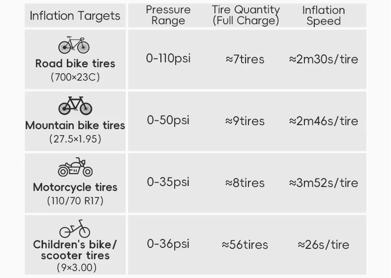 Potência e Autonomia para Longos Pedais: Inflador portátil de alta performance, capaz de encher até 7 pneus de bike speed com uma única carga: