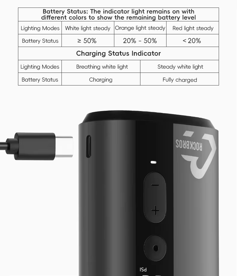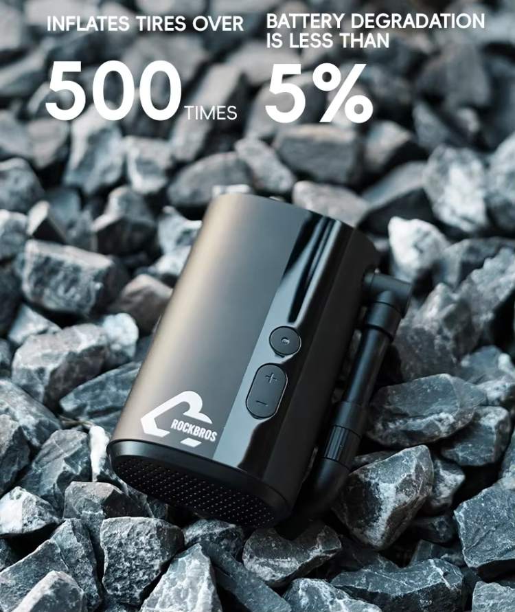 Bateria 5000mAh de Alta Durabilidade: Infla pneus mais de 500 vezes com uma única bateria de longa duração. Com degradação inferior a 5%, mantém desempenho estável e confiável para seus pedais por muito mais tempo: