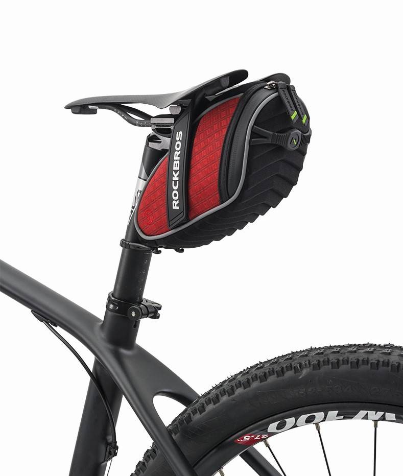 Duas cores: A Bolsa de Selim Impermeável 3D Reflexivo Rockbros vem disponível nas cores vermelho e preto, combinando assim com a sua bicicleta: