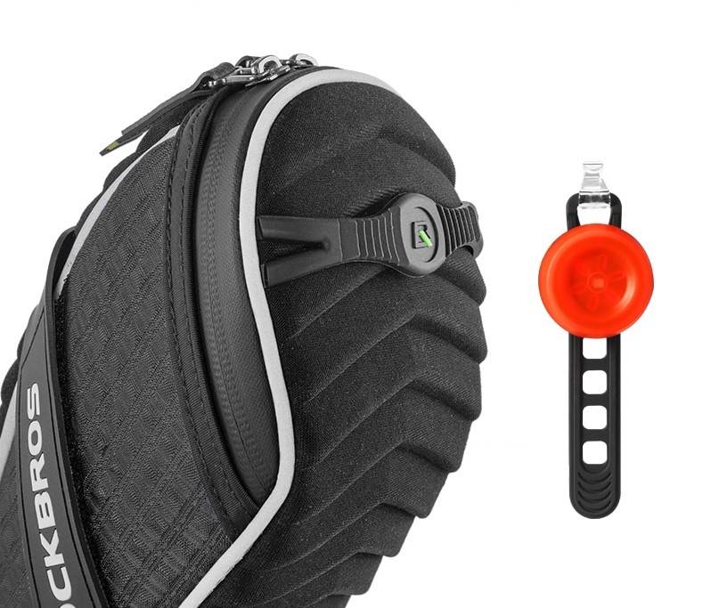 Suporte para luz: A Bolsa de Selim Impermeável 3D Reflexivo Rockbros possui suporte para luz na parte de traz, trazendo mais segurança para a prática noturna: