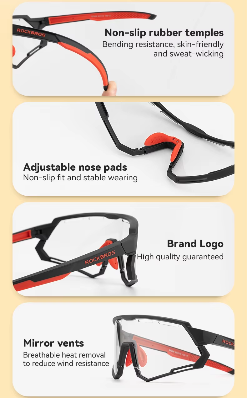 Óculos Rockbros para Ciclismo com peça intercambiável: Lente grande de alta definição: