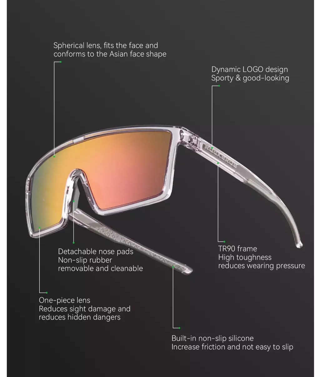 Design Ergonômico e Leve para Máximo Conforto: Lentes esféricas que se adaptam ao rosto, com proteção UV e alta resistência. Conta com ponteiras em silicone antiderrapante, apoio nasal removível e armação TR90 que reduz a pressão durante o uso: