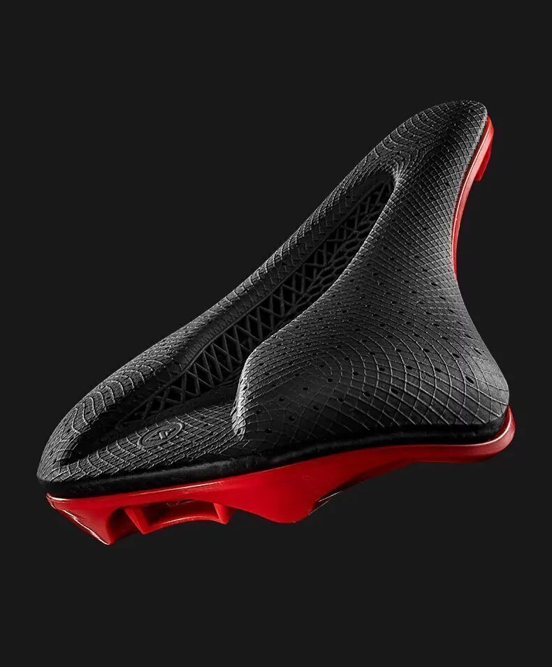 O coxim do assento usa o material composto do poliuretano para imprimir estruturas elásticas da treliça através da tecnologia de impressão de cura clara digital contínua (dlp). Estas treliça ocas são ventiladas e respiráveis. O cavaleiro permanece confortável mesmo depois de longos passeios. Ainda não há vestígios na superfície do teste de dobramento