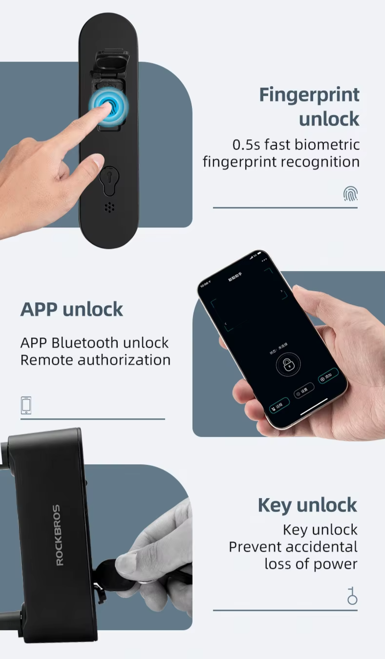 Múltiplas Formas de Desbloqueio: Use impressão digital ultrarrápida (0,5s), app via Bluetooth com autorização remota ou chave de emergência, garantindo acesso fácil em qualquer situação: