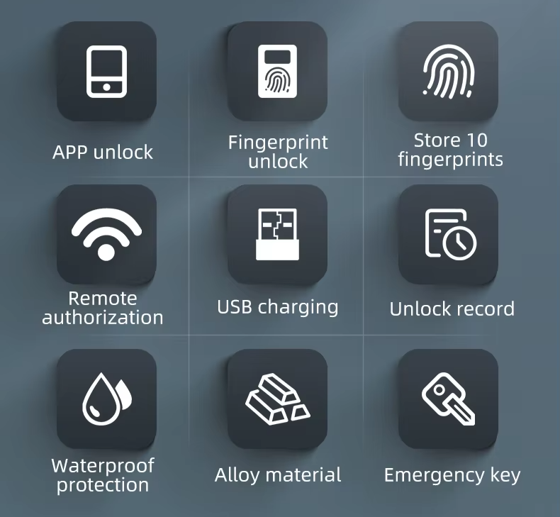 9 Tecnologias em um só Cadeado Inteligente: Desbloqueio por app ou impressão digital, armazenamento de até 10 digitais, acesso remoto, recarga USB, histórico de aberturas, proteção à água, corpo em liga metálica e chave de emergência: